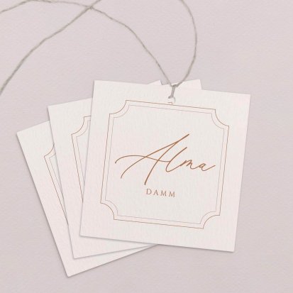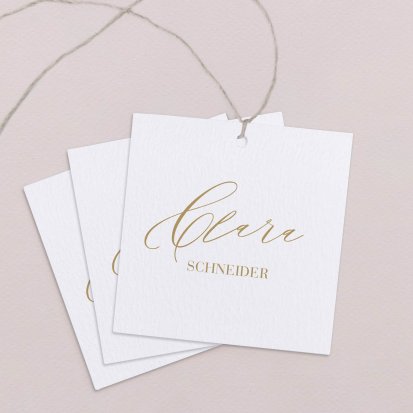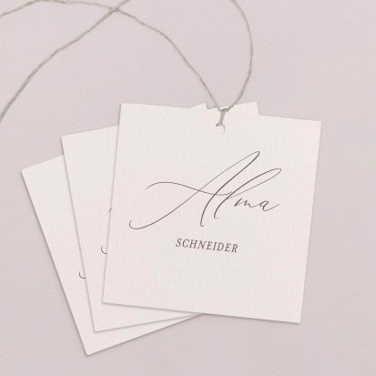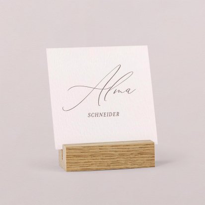 Zeigen Sie Ihren Gästen liebevoll Ihren Platz am Hochzeitstisch! Platzieren Sie die Tischkarte auf der Serviette oder einem anderen Element der Tischdekoration!