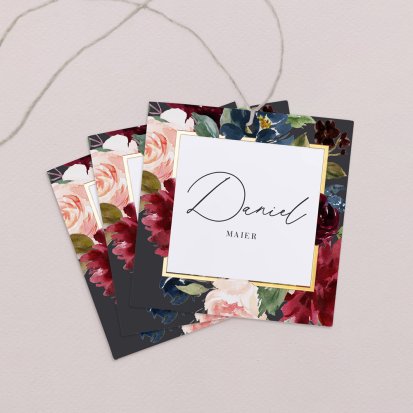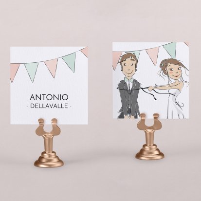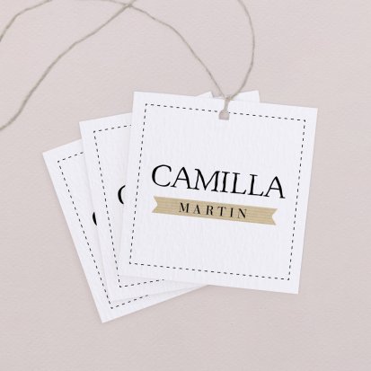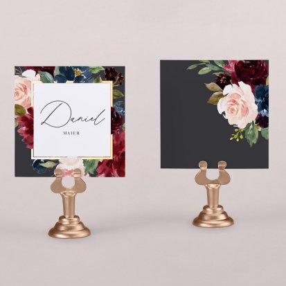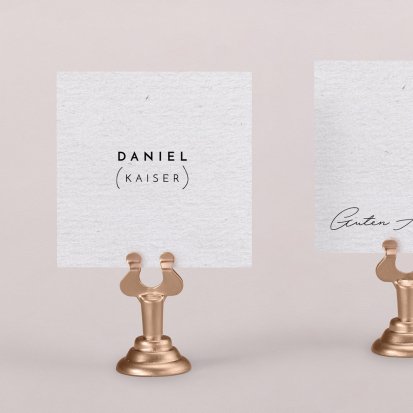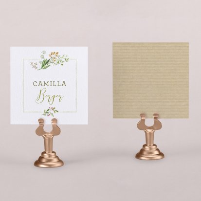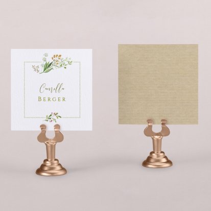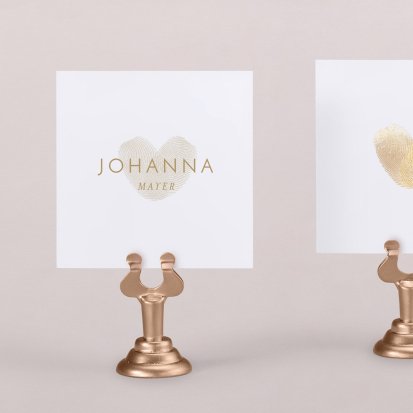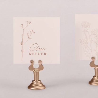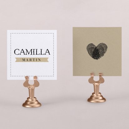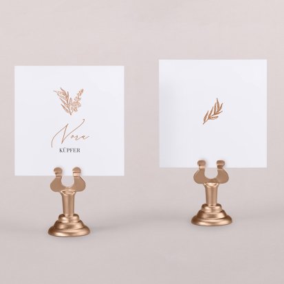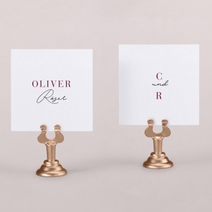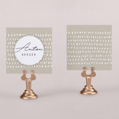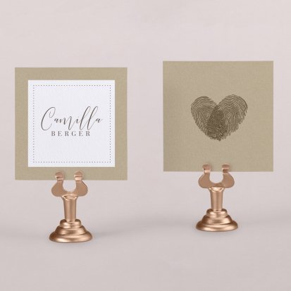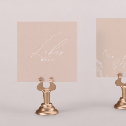 Zeigen Sie Ihren Gästen liebevoll Ihren Platz am Hochzeitstisch! Platzieren Sie die Tischkarte auf der Serviette oder einem anderen Element der Tischdekoration!