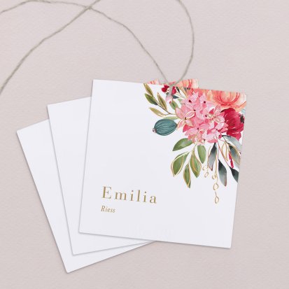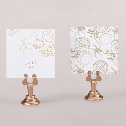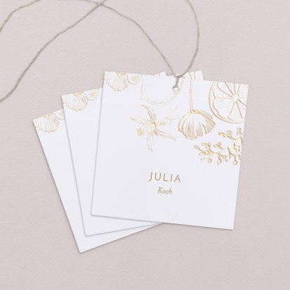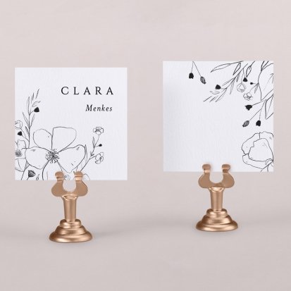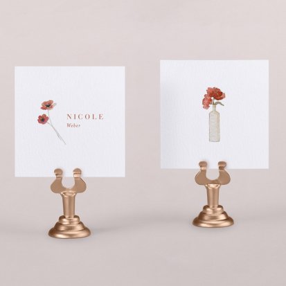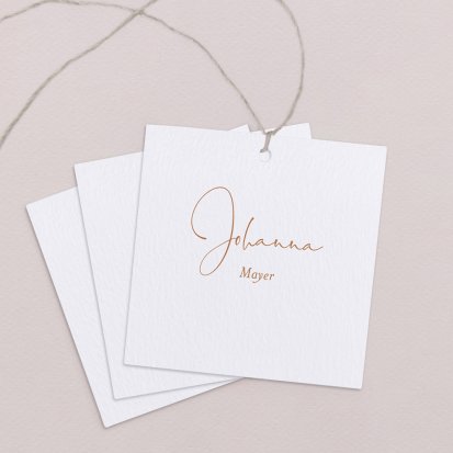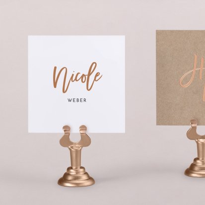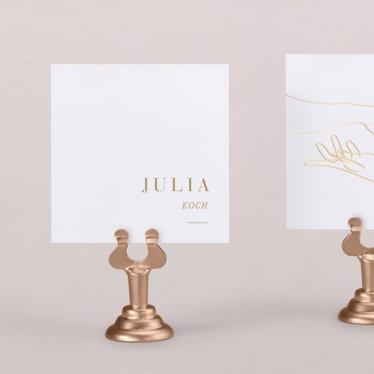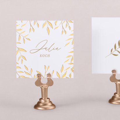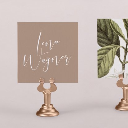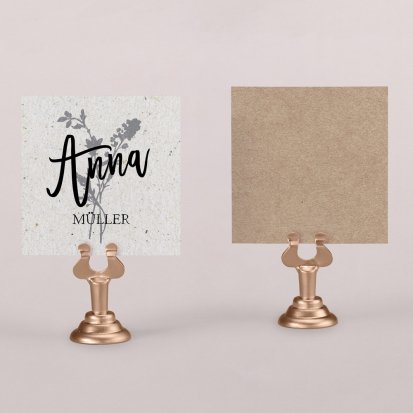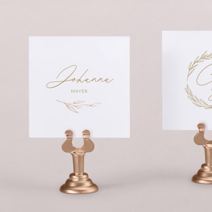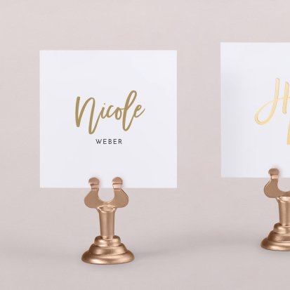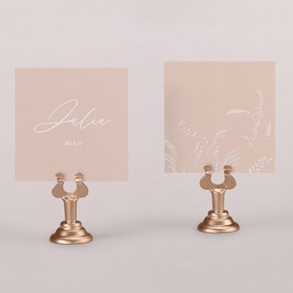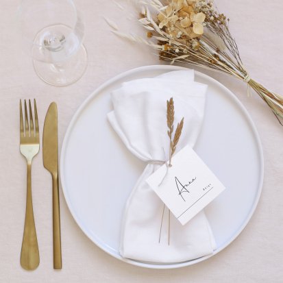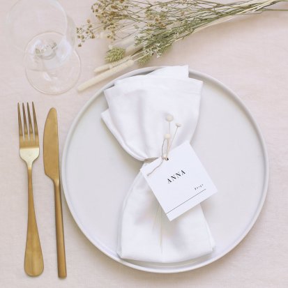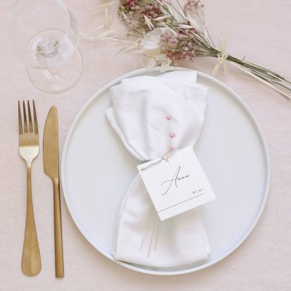 Zeigen Sie Ihren Gästen liebevoll Ihren Platz am Hochzeitstisch! Platzieren Sie die Tischkarte auf der Serviette oder einem anderen Element der Tischdekoration!
