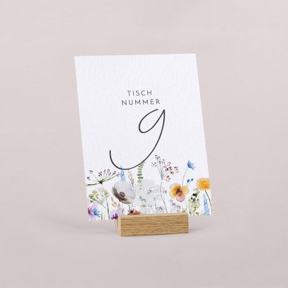 Die Tischnummern im Hochzeitssaal sind nicht nur praktische Orientierungshilfen. Sie sind auch Deko-Elemente, die Ihre Hochzeitspapeterie im Allgemeinen und Ihre Tischdeko im Speziellen vervollständigen. Übrigens: Je nachdem, wie viele Details Sie zum Anlass hinzufügen, können Sie die Tischnummern auch zu einem späteren Anlass – beispielsweise bei runden Geburtstagen oder der Feier der Silber- oder Goldenen Hochzeit – noch einmal wiederverwenden. Das macht die Tischnummern nicht nur zu einem stilvollen, sondern auch zu einem nachhaltigen Deko-Artikel.