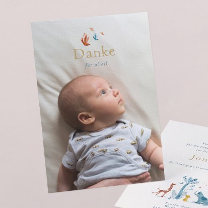 Entdecken Sie unsere große Auswahl an Danksagungskarten zur Geburt in vielen verschiedenen Formaten und Stilrichtungen.