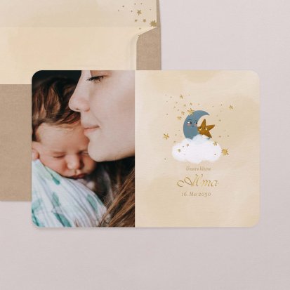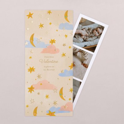 Ihr kleines Wunder hat endlich das Licht der Welt erblickt? Jetzt ist der perfekte Zeitpunkt, um Ihre Freude mit Ihren Liebsten zu teilen. Wählen Sie eine Geburtskarte und gestalten Sie sie ganz individuell mit Fotos und/oder Text, um Ihrem Babyglück Ausdruck zu verleihen.