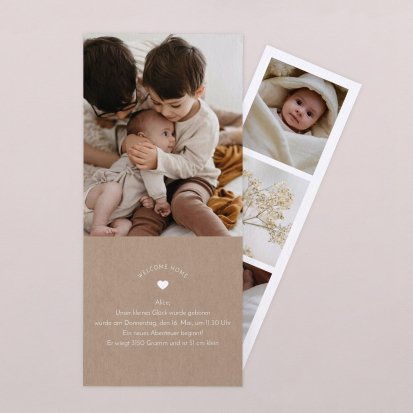 Ihr kleines Wunder hat endlich das Licht der Welt erblickt? Jetzt ist der perfekte Zeitpunkt, um Ihre Freude mit Ihren Liebsten zu teilen. Wählen Sie eine Geburtskarte und gestalten Sie sie ganz individuell mit Fotos und/oder Text, um Ihrem Babyglück Ausdruck zu verleihen.