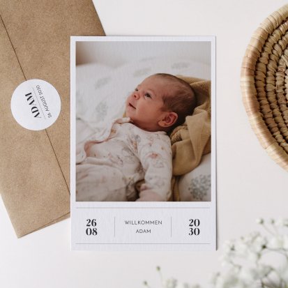 Ihr kleines Wunder hat endlich das Licht der Welt erblickt? Jetzt ist der perfekte Zeitpunkt, um Ihre Freude mit Ihren Liebsten zu teilen. Wählen Sie eine Geburtskarte und gestalten Sie sie ganz individuell mit Fotos und/oder Text, um Ihrem Babyglück Ausdruck zu verleihen.