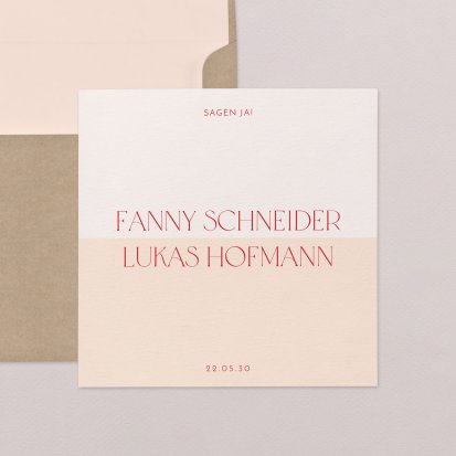 Entdecken Sie unsere große Auswahl an Hochzeitseinladungen in vielen verschiedenen Formaten und Stilrichtungen.