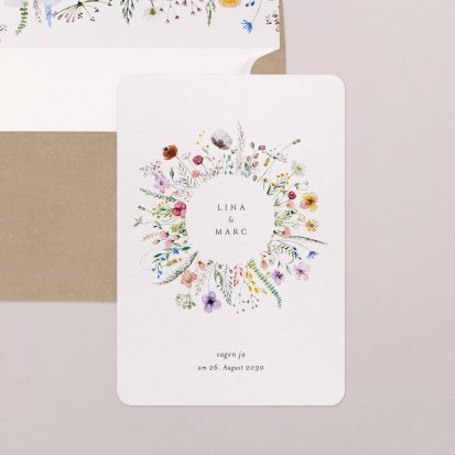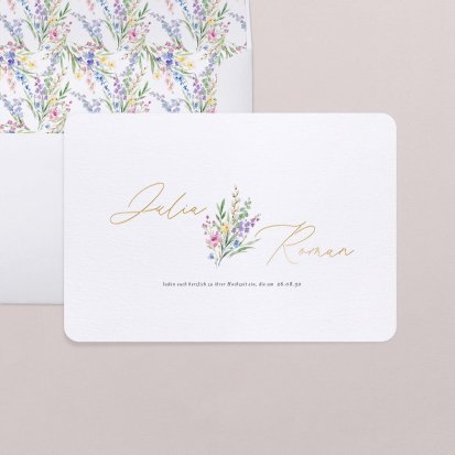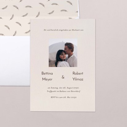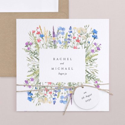 Entdecken Sie unsere große Auswahl an Hochzeitseinladungen in vielen verschiedenen Formaten und Stilrichtungen.