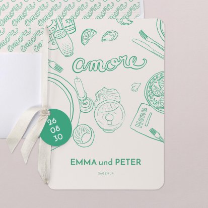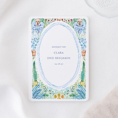 Ist die gewählte Karte Teil einer Kollektion, ist breit gefächertes Zubehör im selben Design erhältlich: Geschenk-Anhänger, Danksagungs- und Post-Antwortkarten, Tischkärtchen, Konfetti-Kegel, Menükarten, ein Fotostreifen als Lesezeichen u.v.m. sorgen für den roten Faden in Sachen Ästhetik und verbinden das Angenehme mit dem Nützlichen.