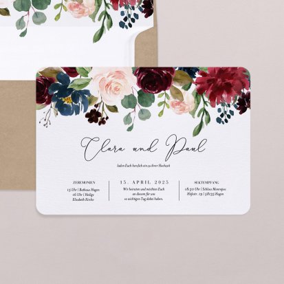 Entdecken Sie unsere große Auswahl an Hochzeitseinladungen in vielen verschiedenen Formaten und Stilrichtungen.