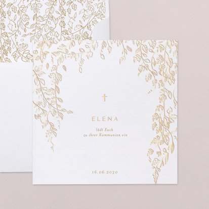 Wie heißt es doch so schön: Wer die Wahl hat, hat die Qual. Bei uns haben Sie viel Auswahl, aber wenig Qual. Denn beim Durchstöbern unserer Einladungskarten geht Papeterie-Liebhabern das Herz auf. Jedes einzelne Design ist mit Liebe von unserem Grafiker-Team gestaltet. Um die passende Einladungskarte für die Kommunion Ihres Kindes zu finden, haben Sie verschiedene Möglichkeiten. Entweder Sie durchstöbern unser Angebot, bis Sie auf die Karte stoßen, die Sie begeistert. Oder Sie nutzen den Suchfilter, um die Auswahl einzugrenzen. Außerdem haben Sie die Möglichkeit, bestimmte Kollektionen zu suchen. Das macht vor allem dann Sinn, wenn Sie weitere Papeterie-Produkte für die Erstkommunion bestellen möchten.