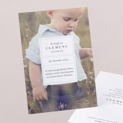 Entdecken Sie unsere große Auswahl an Danksagungskarten zur Taufe in vielen verschiedenen Formaten und Stilrichtungen.