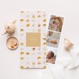 Auf der Geburtskarte Einlage kündigen köstlich illustrierte Leckereien die Ankunft des Babys an. Eine originelle Kreation voller Süße, die perfekt ist, um Ihr Glück zu verkünden.