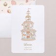 Ein großes Karussell steht im Mittelpunkt der Geburtskarte My sweet carrousel. Eine Parade von Tieren in sanften Aquarelltönen ziert dieses nostalgische und zugleich originelle Bild voller Zärtlichkeit – ideal, um die Geburt Ihres kleinen Mädchens oder Jungen anzukündigen.
