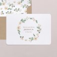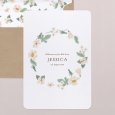 Auf der Geburtskarte Weiße Rose schmückt ein hübscher Kranz aus weißen Wildrosen den Namen Ihres Babys. Das Design der Geburtsanzeige ist frisches und luftig und passt perfekt zu einer Geburt im Frühling oder Sommer.