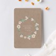 Auf der Geburtskarte Weiße Rose - Kraft ziert ein hübscher Blumenkranz Ihre freudigen Neuigkeiten. Ihre Liebsten werden von der Authentizität und Frische Ihrer Geburtsanzeige begeistert sein.