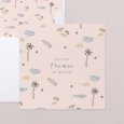 Mit ihren sommerlichen Mustern und Farben erinnert die Geburtskarte Aloha an lange Sommertage und entspannte Stunden am Meer. Diese originelle Kreation verkündet die Geburt Ihres kleinen Glücks mit sanfter Wärme. - Farbe: Beige, Blau, Grün - Thema: Originell, Meer, maritim - Illustrationen: Sonnenschirm, Meer, Surfbrett, Orangen