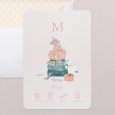 Auf der Geburtskarte Entrechat thront eine süße Maus auf der Spitze eines Stapels von Koffern. Dieses zarte Modell mit seinem süßen Boten und den zarten Pastellfarben wird Ihre Lieben schon beim Öffnen des Umschlags verzaubern.