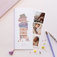 Das besondere Format dieser Geburtskarte wird Ihre Liebsten begeistern! Dieses Modell besteht aus einer hochformatige Klappkarte und einem herausnehmbaren Fotostreifen, der als Andenken aufbewahrt, an den Kühlschrank gepinnt oder als Lesezeichen benutzt werden kann.