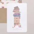 Die Geburtsanzeige Jyoti zeigt eine herzerwärmende Bohème-Illustration. Ein niedliches Kaninchen steht neben einer hübschen Kommode, auf der ein Stapel farbenfroher Wickeltücher liegt. Diese zarte und raffinierte Geburtsanzeige wird die Ankunft Ihres kleinen Schatzes herzlich ankündigen.