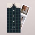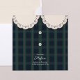 Als Hommage an den ikonischen Claudine-Kragen wurde die Geburtskarte Claudine – Tartan entworfen, um die Geburt Ihres Babys auf originelle Weise zu verkünden. Das klassische Tartan-Muster verleiht diesem zarten Design grafische Tiefe und sanfte Wärme. – Farbe: grün, blau, braun, beige – Thema: elegant, originell – Illustrationen: Claudine-Kragen, Kleidung, Knöpfe