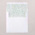 Die Geburtskarte Amanda zeigt ein sanftes Frühlingsmotiv in zarten Grüntönen. Mit goldenen Verzierungen versehen, ist dieses poetische Design perfekt für die Ankündigung eines Mädchens oder Jungen im Frühling oder Sommer.
