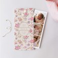 Feiern Sie die Ankunft Ihres kleinen Schatzes mit Rosalia, einer Geburtskarte mit boho-Flair mit zarten Blumenmustern in sanften und harmonischen Farben, perfekt um Ihr Neugeborenes Willkommen zu heißen.