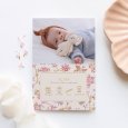 Mit der Geburtsanzeige Julietta können Sie die Ankunft Ihres Kindes auf elegante und poetische Weise ankündigen. Der Vorname Ihres Kindes steht in goldenen Buchstaben geschrieben und wird zart von Blumenmotiven in Rosatönen umrahmt.