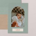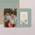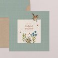 Diese Geburtskarte besticht durch ihren raffinierten Fensterausschnitt und die herausnehmbare Einlegekarte. Die Klappkarte und die Einlegekarte können personalisiert werden.