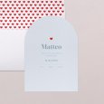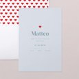 Auf der Geburtsanzeige Kleines Herz I untermalen zartes Himmelblau und ein leuchtendes rotes Herzchen die Ankündigung Ihres Glücks. Ein schlichtes Design, das Ihre Familie und Freunde begeistern wird!