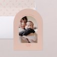 Diese halbrunde Geburtskarte mit bogenförmiger Oberkante kann auf der Vorder- und Rückseite mit Infos rund um die Geburt Ihres Babys personalisiert werden.