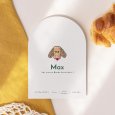 Diese halbrunde Geburtskarte mit bogenförmiger Oberkante kann auf der Vorder- und Rückseite mit Infos rund um die Geburt Ihres Babys personalisiert werden.