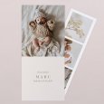 Diese Danksagung hat es in sich: die Klappkarte im Hochformat beinhaltet einen Fotostreifen mit Platz für 3 Ihrer schönsten Babyfotos.