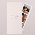 Diese Danksagung hat es in sich: die Klappkarte im Hochformat beinhaltet einen Fotostreifen mit Platz für 3 Ihrer schönsten Babyfotos.