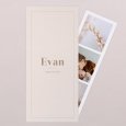 Diese Danksagung hat es in sich: die Klappkarte im Hochformat beinhaltet einen Fotostreifen mit Platz für 3 Ihrer schönsten Babyfotos.