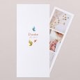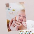 Diese Danksagung hat es in sich: die Klappkarte im Hochformat beinhaltet einen Fotostreifen mit Platz für 3 Ihrer schönsten Babyfotos.