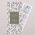 Diese Danksagung hat es in sich: die Klappkarte im Hochformat beinhaltet einen Fotostreifen mit Platz für 3 Ihrer schönsten Babyfotos.