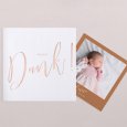 Diese Danksagung hat es in sich: die Klappkarte im Hochformat beinhaltet einen Fotostreifen mit Platz für 3 Ihrer schönsten Babyfotos.