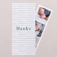 Diese Danksagung hat es in sich: die Klappkarte im Hochformat beinhaltet einen Fotostreifen mit Platz für 3 Ihrer schönsten Babyfotos.