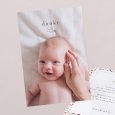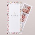 Diese Danksagung hat es in sich: die Klappkarte im Hochformat beinhaltet einen Fotostreifen mit Platz für 3 Ihrer schönsten Babyfotos.