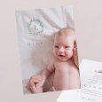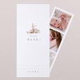 Diese Danksagung hat es in sich: die Klappkarte im Hochformat beinhaltet einen Fotostreifen mit Platz für 3 Ihrer schönsten Babyfotos.