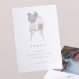 Diese Danksagung hat es in sich: die Klappkarte im Hochformat beinhaltet einen Fotostreifen mit Platz für 3 Ihrer schönsten Babyfotos.