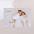 Diese Danksagung hat es in sich: die Klappkarte im Hochformat beinhaltet einen Fotostreifen mit Platz für 3 Ihrer schönsten Babyfotos.