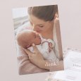 Diese Danksagung hat es in sich: die Klappkarte im Hochformat beinhaltet einen Fotostreifen mit Platz für 3 Ihrer schönsten Babyfotos.