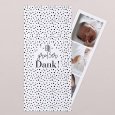 Diese Danksagung hat es in sich: die Klappkarte im Hochformat beinhaltet einen Fotostreifen mit Platz für 3 Ihrer schönsten Babyfotos.