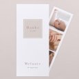 Diese Danksagung hat es in sich: die Klappkarte im Hochformat beinhaltet einen Fotostreifen mit Platz für 3 Ihrer schönsten Babyfotos.