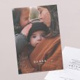 Diese Danksagung hat es in sich: die Klappkarte im Hochformat beinhaltet einen Fotostreifen mit Platz für 3 Ihrer schönsten Babyfotos.