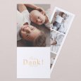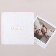 Diese Danksagung hat es in sich: die Klappkarte im Hochformat beinhaltet einen Fotostreifen mit Platz für 3 Ihrer schönsten Babyfotos.