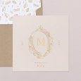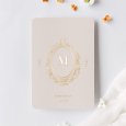 Geschwungene Ornamente mit Goldfolie rahmen den Anfangsbuchstaben des Namen Ihres Kindes. Das Modell Spiegel ist eine festliche, elegante Einladungskarte, mit der Sie das besondere Ereignis der Heiligen Kommunion stilvoll ankündigen können.