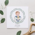 Quadratische Kommunionskarte zum Aufklappen. Die Vorder-, Rück- und Innenseiten sind mit Ihrem Text und Foto personalisierbar.