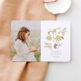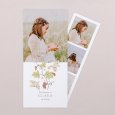 Auf der Einladungskarte Kleine Rebe überbringen Tauben die frohe Botschaft, dass die Kommunion Ihres Kindes bald gefeiert wird! Zärtlich illustriert und mit Ihrem Lieblingsfoto gestaltet, wird diese Kommunionskarte Ihre Gäste garantiert verzaubern.