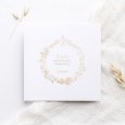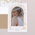 Die Kommunionskarte Santa Flora ist mit einem hübschen Kranz aus Blumen, Blättern, einer kleinen Taube und einer Kirche illustriert. Die Goldveredelung lässt das Design besonders elegant wirken. Diese wunderschöne Einladung passt perfekt zu einer festlichen Kommunionsfeier im Kreise Ihrer Liebsten.